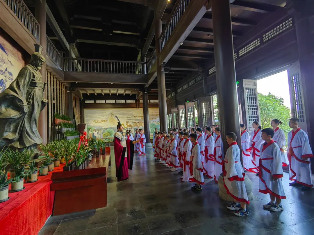 营员们前往爱国主义诗人屈原故里,举办了隆重的拜师仪式,亲手制作了秭归清水粽。