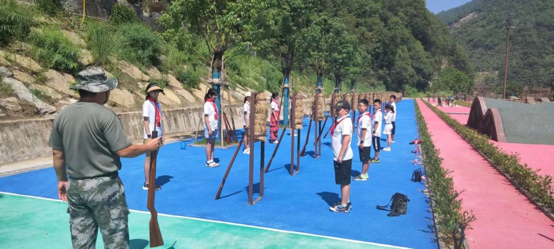 在高岚国防教育基地,营员们瞻仰英雄雕像,顺利完成400米障碍的训练。