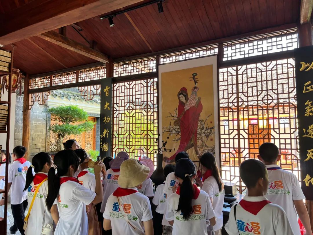 在昭君村,营员们倾听当地“红领巾讲解员”讲述昭君故事,了解昭君为了国家大义、民族和平而历经坎坷、波澜壮阔的伟大一生。