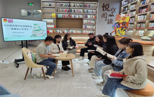 呼和浩特市团委动员各级团组织以青年之家等团属阵地为依托,为青年提供读书交流平台及优质图书资源,积极开展主题读书季活动,以主题宣讲、骨干领读、亲子共读、实践研读等形式,组织团员青年围绕《习近平著作选读》《论党的青年工作》及《习近平关于中国式现代化论述摘编》等书籍进行交流学习。