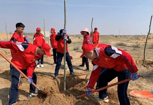 4月12日,共青团伊金霍洛旗委员会联合鄂尔多斯团市委、 鄂尔多斯文体交通广播 、 神东煤炭集团团委组织青年文明号、青年企业家协会、青年突击队及各级团组织共200余名“蒙小青”志愿者在乌兰木伦镇神东布尔台煤矿生态光伏项目区开展青春助力“美丽内蒙古”暨“保护母亲河·爱我鄂尔多斯”2021年青少年植绿护绿行动。