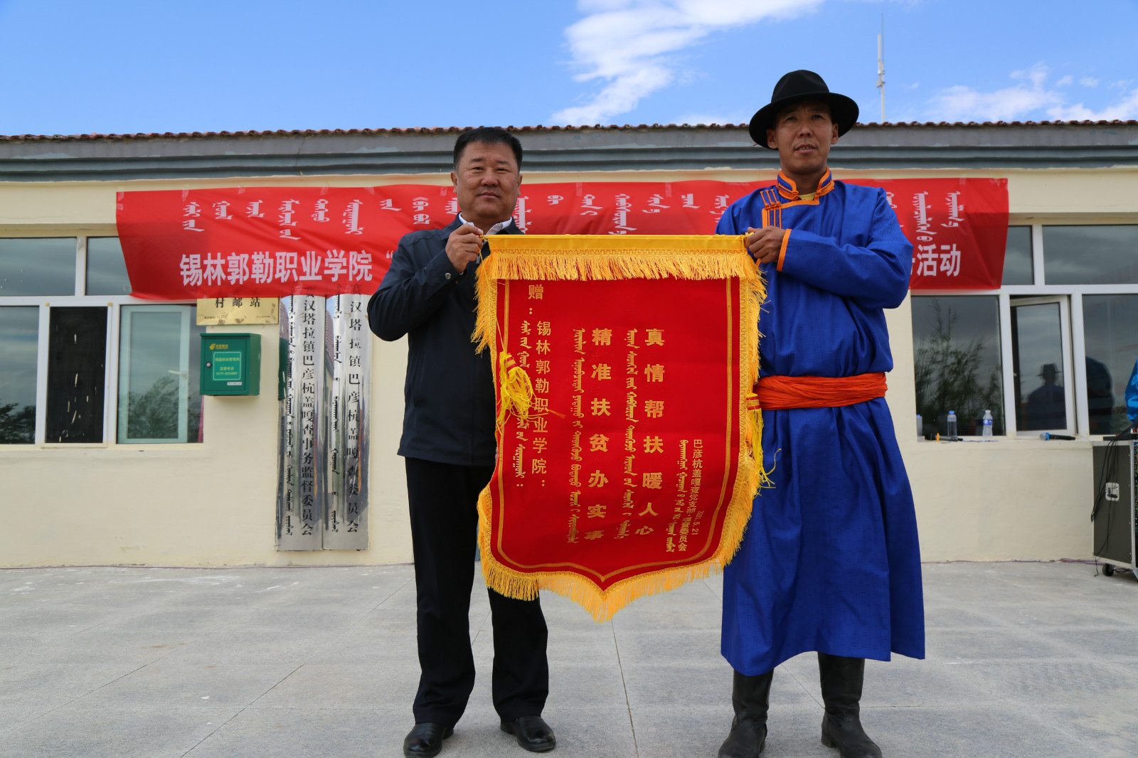 活动中,巴彦杭盖嘎查为我院赠“精准扶贫办实事 真情帮扶暖人心”锦旗,并为我院驻村帮扶干部哈斯朝鲁颁发感谢状,感谢我院在巴彦杭盖嘎查精准扶贫工作中的倾力帮扶。