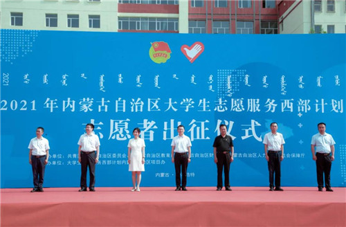 “请党放心,强国有我”,2021年内蒙古大学生志愿服务西部计划志愿者出征仪式7月16日在呼和浩特举行。自治区团委副书记高国峰及西部计划工作领导小组成员单位相关负责人出席出征仪式。