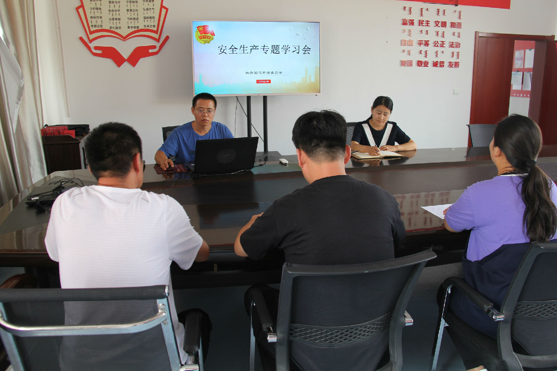 为全面做好共青团安全生产工作,切实履行安全生产主体责任制,落实“一岗双责”工作机制,7月23日,乌审旗团委组织全体干部职工召开安全生产专题学习会议,会议由团旗委副书记王双艳主持。