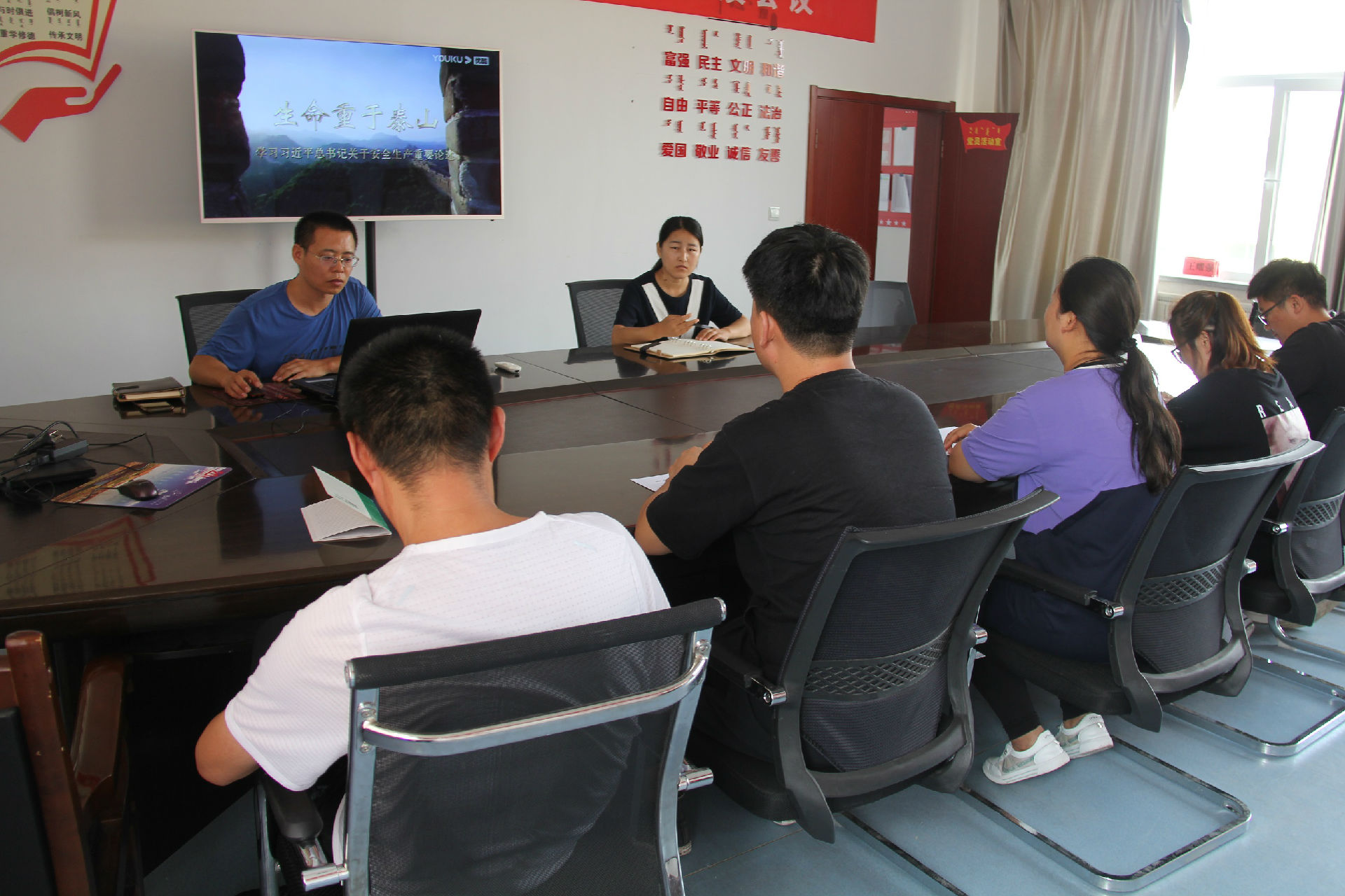 会上,全体干部职工学习了党中央、自治区级市里关于安全生产工作的重要指示批示精神,学习了旗应急管理局、水利局、气象局关于应急救援及抢险救灾工作的重要通报,会后,全体干部职工观看了《生命重于泰山——学习总书记关于安全生产重要论述》电视专题片。