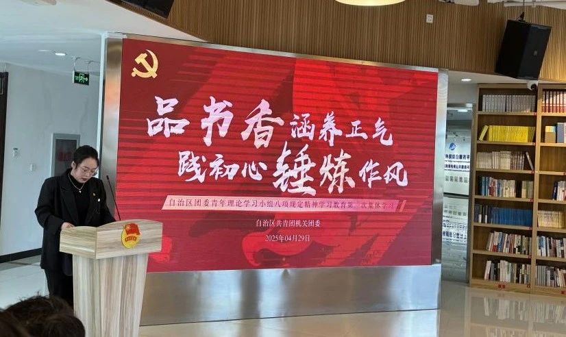 为进一步贯彻落实习近平总书记考察内蒙古时关于“以学正风”的重要要求,全面落实习近平总书记关于青年工作的重要思想,充分发挥青年理论学习小组作用,推动理论学习成果转化为岗位建功的强大动力,在五四青年节来临之际,自治区团委机关团委组织开展了贯彻落实中央八项规定精神学习教育第一次集体学习交流活动,4月25日下午,机关35周岁以下党员、团员和青年干部齐聚青年书屋,以“品书香涵养正气 践初心锤炼作风”为主题,共学纪律规矩,共筑作风防线,切实扣好年轻干部成长成才的“第一粒扣子”,坚定不移做“两个确立”忠诚拥护者、“两个维护”示范引领者。