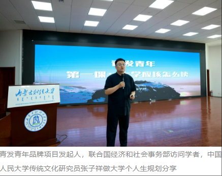 青发青年品牌项目发起人,联合国经济和社会事务部访问学者,中国人民大学传统文化研究员张子祥围绕《大学应该怎么读》展开分享,从学术规划、社会实践、国际视野等维度,为大学生提供了全方位的成长建议,其倡导的“中华文化视域下的领导力模型”引发热烈反响。
