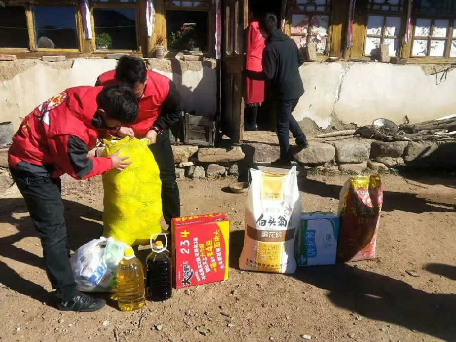 每到一户,志愿者们都关切地询问贫困户们的身体健康状况、家庭收入情况、子女就学情况等,还为他们送去米、面、油,及各种生活用品,并鼓励他们坚定信心,勇于克服困难,保持乐观积极的生活态度,发展种养植业,努力改善家庭生产生活条件,早日实现脱贫致富。
