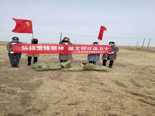 为进一步弘扬雷锋精神, 3月4日,呼伦贝尔市新巴尔虎右旗克尔伦苏木耐日莫德勒嘎查团支部组织嘎查共青团员在旗一幼儿园周围开展了主题为“弘扬雷锋精神 做文明环保卫士”的环境大清理活动,积极践行雷锋精神。