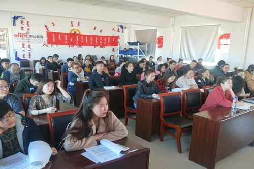 本次培训分为蒙语授课和汉语授课,为期4天,培训时间为2019年3月21日—3月24日,培训围绕行测-数量关系、资料分析、申论等方面内容,就答题技巧、写作技巧、答题时间安排等进行系统讲解。学员们专心听课,认真思考,并积极与授课老师互动交流,培训取得良好效果。