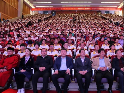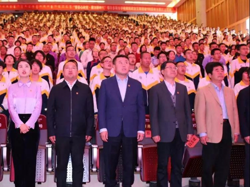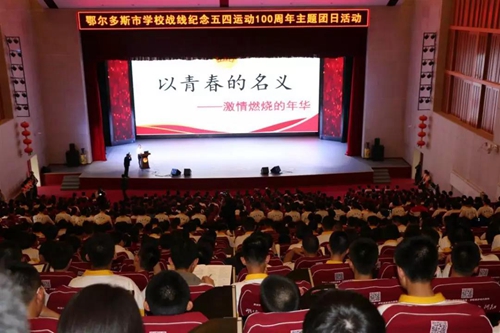 为庆祝中华人民共和国成立70周年,纪念五四运动100周年,深入贯彻落实习近平总书记在纪念五四运动100周年大会上的重要讲话精神,鄂尔多斯团市委、市教育体育局于5月8日下午在鄂尔多斯市第一中学开展了“青春心向党·建功新时代”——鄂尔多斯市学校战线纪念五四运动100周年主题团日活动。团市委书记王高炜、市教育体育局副局长郑军、团市委副书记白杰,以及各市直学校负责人和新老团员1000余人参加了活动。