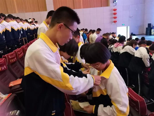 来自市蒙古族中学高一年级的宁静同学作为新团员代表在仪式上发言,她号召全体新团员发扬共青团优良传统,保持昂扬的精神状态,在学习中明确目标,在生活中互帮互助,在工作中群策群力,时刻体现团员先进性,以实际行动践行自己的入团誓言。来自市第一中学高一年级的樊景月同学代表老团员欢迎了新团员们的加入,并以自身三年的团员经历向新团员们分享了自己的切身体会,最后她呼吁所有团员要牢记新时代赋予的新使命,以昂扬的斗志和饱满的热情投身中华民族伟大复兴的事业。