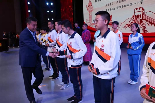 本次主题团日活动由共青团鄂尔多斯市委员会和市教育体育局主办,鄂尔多斯市第一中学承办,仪式程序严格按照团中央的有关规定执行。