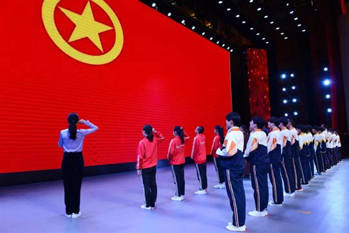 团市委学少部负责同志带领全体团员在团旗下庄严宣誓
