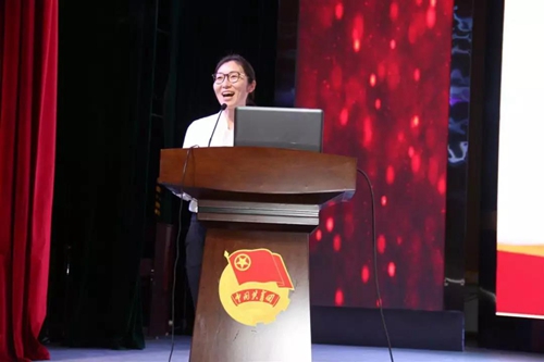 市第一中学的王小琴老师为现场全体团员们讲授了“以青春的名义”为主题的微团课。她以五四运动100周年的发展历程为切入点,讲解了中国青年从1919年至2019年的青年运动奋斗史,表达了新时代中国青年运动的主题、方向和使命,就是坚持中国共产党领导,同人民一道,为实现‘两个一百年’奋斗目标、实现中华民族伟大复兴的中国梦而奋斗。