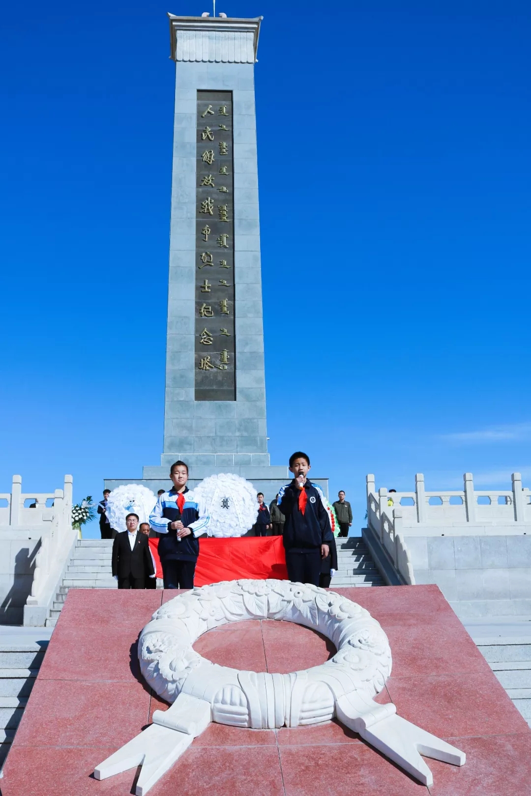 青年同志们在烈士纪念塔前,通过奏国歌、向革命烈士敬献花圈等形式,表达了对革命先烈的无限缅怀之情。