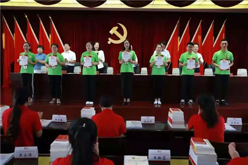 第十一期、第十二期青马班全体学员面向党旗、团旗宣誓
