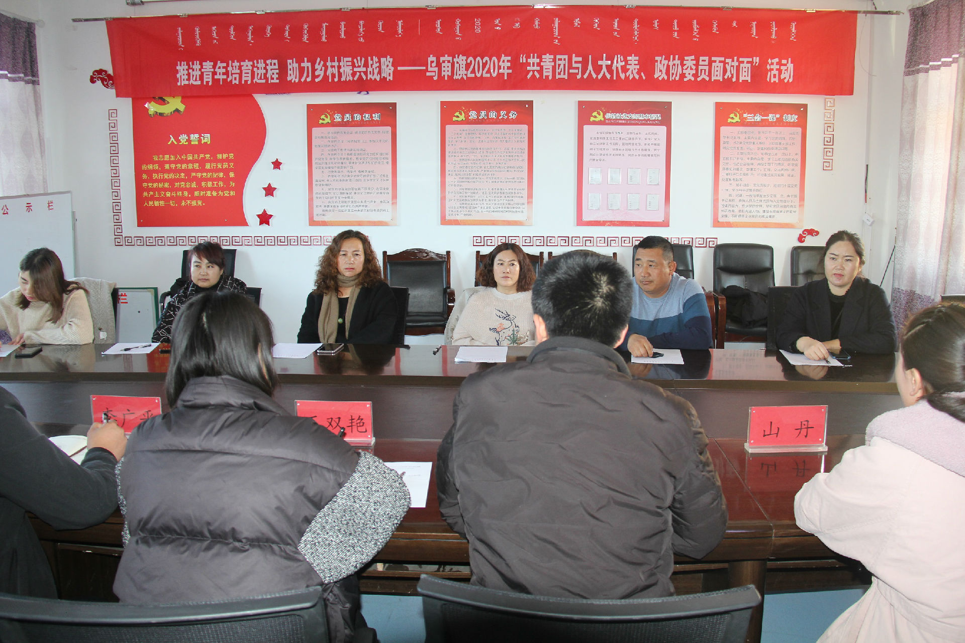 为推进青年成长成才工作,深入实施乡村振兴战略,乌审旗团委按照上级团委安排部署,围绕旗委政府中心工作,积极组织创新创业、快递行业青年代表,于12月13日开展了以“推进青年培育进程,助力乡村振兴战略”为主题的“共青团与人大代表面对面”活动。