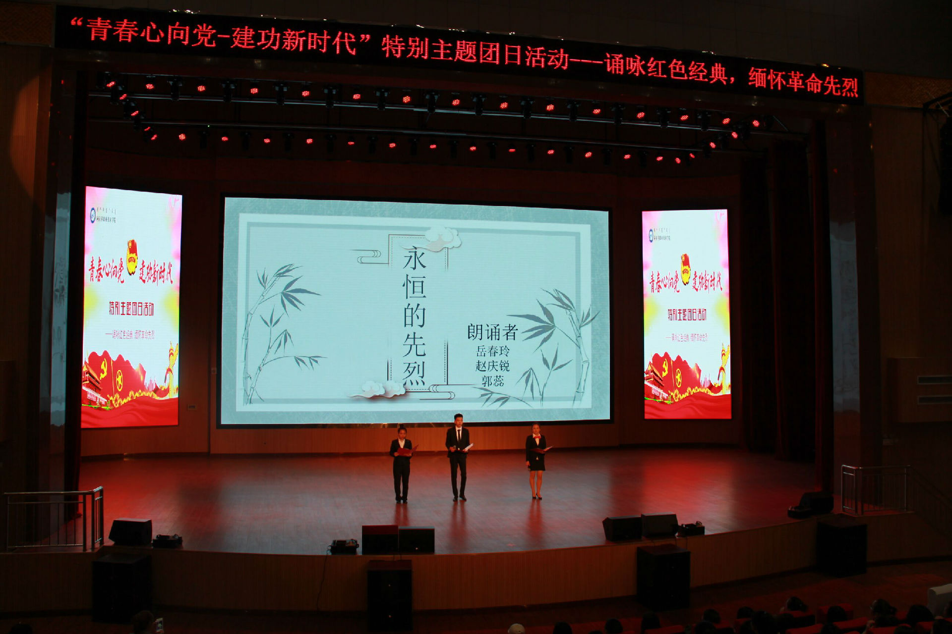 为庆祝中华人民共和国成立70周年、纪念五四运动100周年,为让学院师生重温红色经典、牢记历史、缅怀烈士,直观的接受革命历史教育和爱国主义教育,4月11日下午,学院团委在智苑音乐厅组织开展“诵咏红色经典 缅怀革命先烈”活动,巴彦浩特校区全体高职学生及部分教职工700余人参加活动。