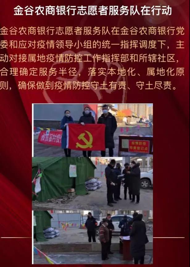 新型冠状病毒疫情爆发后,呼和浩特金谷农商银行团委全面落实上级团委及行党委部署,充分发挥各级团组织、团员青年生力军和突击队的作用,加强志愿服务的主动对接,号召全行青年积极主动、有序有力地参加到战役斗争中去,让青年文明号、青年突击队、青年安全生产示范岗成为战役先锋号、阻疫突击队、胜疫安全岗,凝聚起强大青春正能量,众志成城,共克时艰,为坚决遏制疫情扩散、夺取防控斗争的最终胜利贡献力量。