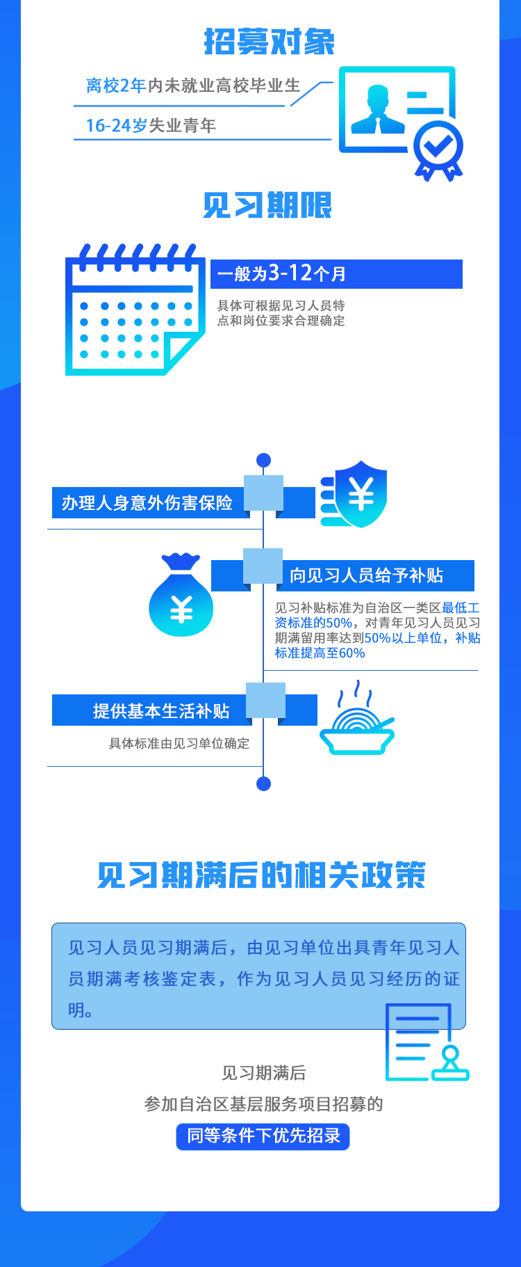 为帮助青年加强岗位实践锻炼、提升就业能力,自2019年自治区团委启动“青年见习计划”以来,确定了一批用人单位为青年见习单位,帮助有就业意愿的未就业高校毕业生和失业青年进行一定期限的岗位训练和实践性活动,从而提高职业技能和就业能力。受新冠肺炎疫情影响,今年稳就业任务艰巨繁重。为贯彻落实中央、自治区决策部署,自治区团委在全区开展共青团促进青年就业专项行动,将服务青年就业放在更加突出位置,切实提升服务青年就业工作实效,更好展现团的组织力、引领力、服务力和贡献度。其中,“青年见习计划”作为专项行动的一项重要举措,我们特设立【青就业·见习岗位】专栏,收集见习单位岗位,动态发布开展政务实习、企业实习和职场体验等活动信息,帮助青年及时了解就业见习。