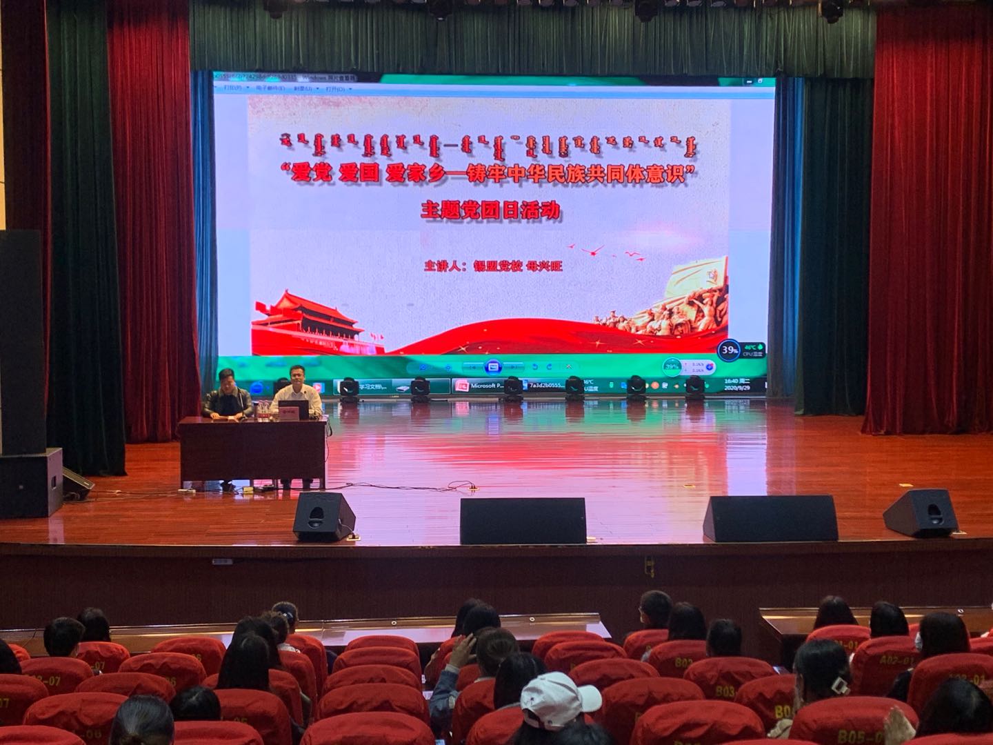 为引领全体师生切实把思想和行动统一到党中央决策部署上来,不断增强对伟大祖国、中华民族、中华文化、中国共产党和中国特色社会主义的认同,以铸牢中华民族共同体意识为主线做好各项工作,锡林郭勒职业学院医学系于9月29日在学院大礼堂组织开展了“爱党、爱国、爱家乡——铸牢中华民族共同体意识”主题党团日活动。医学系部分党员教师、学生入党申请人、积极分子、在校学生党员和团干部共420余人参加了活动。
