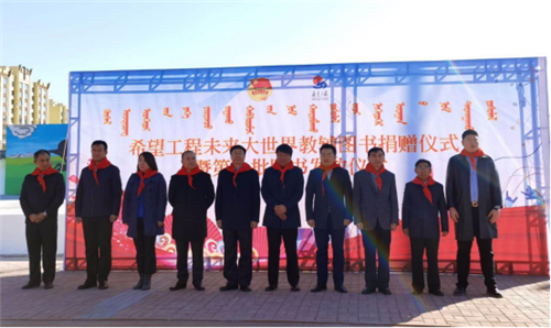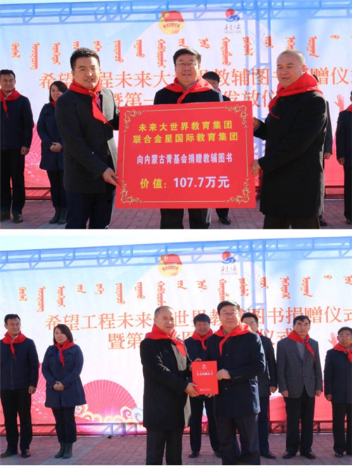 10月15日,希望工程未来大世界教辅图书捐赠仪式暨首批图书发放仪式在兴安盟科右中旗巴彦呼舒镇三星希望小学举行。内蒙古青基会秘书长格日乐图、未来大世界教育集团董事长司国民、金星国际教育集团副总经理赵红磊和科右中旗有关领导及学校师生参加捐赠发放活动。