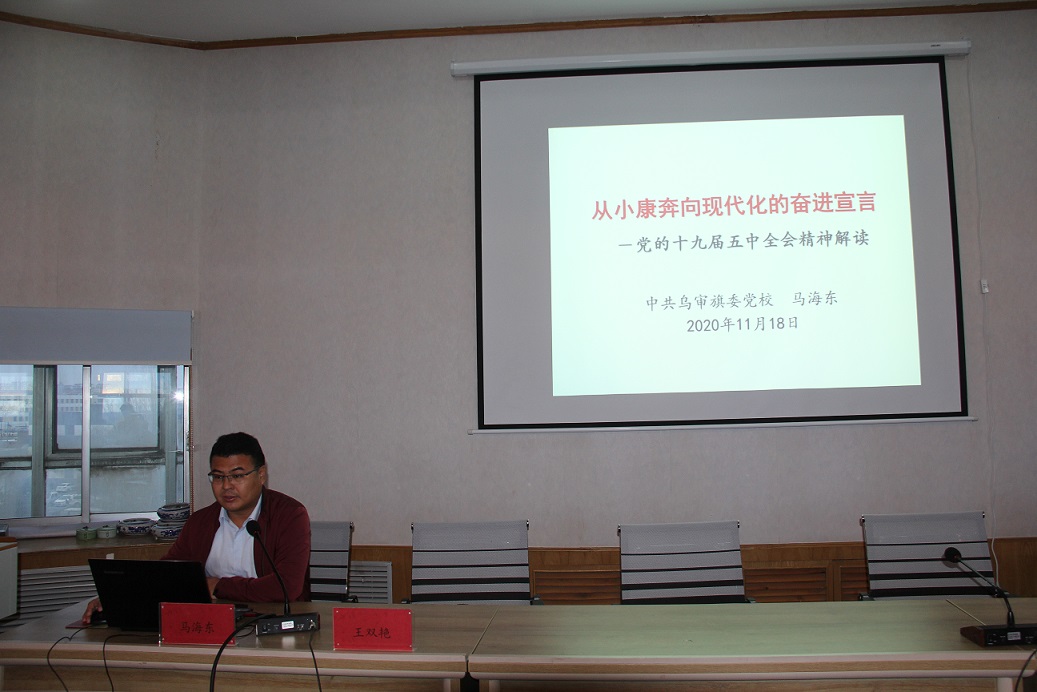开班仪式结束后,中共乌审旗委党校讲师马海东讲授《党的十九届五中全会精神》。此次培训对象为全旗各苏木镇、嘎查村、社区、驻地企业的团干部。培训为期2天,课程采取理论教学、现场观摩、座谈交流等方式进行。